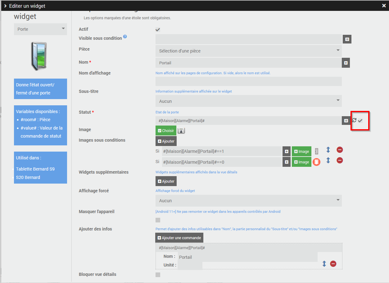 l’anomalie ne concerne pas « widget de type porte »
