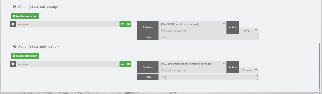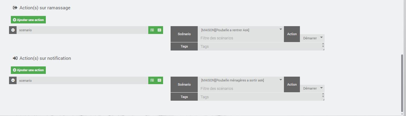 Donc en Action sur ramassage; j active le scénario « rentrer poubelle »