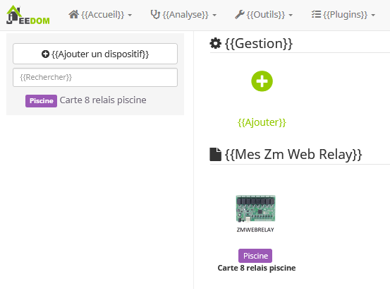 En revanche, lorsque je vais dans mon plugin ZmWebRelay, tous les titres des menus et autres sont entre double crochets (voir copie d’écran). Je ne peux pas accéder à mon équipement, ni à aucun autre élément de la page, hormis les menus du haut.