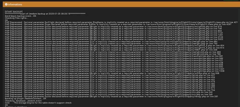 Et à la sauvegarde Jeedom, il y a tout une série de PHP Deprecated: