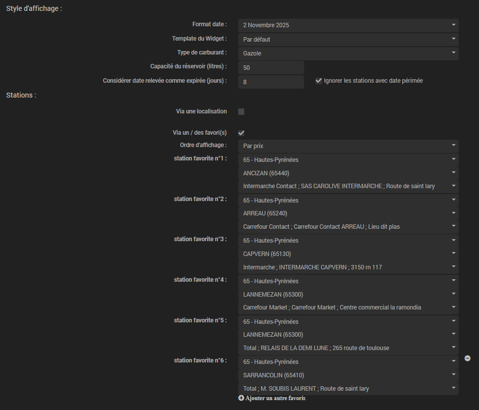 Effectivement, j’ai un peu laché jeedom depuis un moment. J’ai toujours la possibilité de valider un PR si tu te sent le courage d’aller fouiller (ou qui que ce soit). probablement des indice de station qui existent mais ne proposent pas le carburant