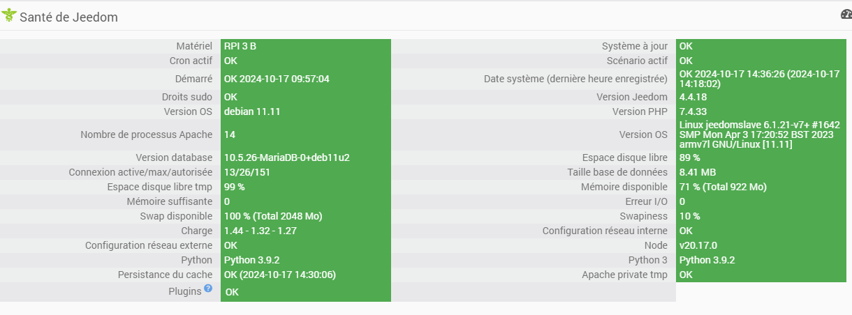Santé Jeedom tout au vert