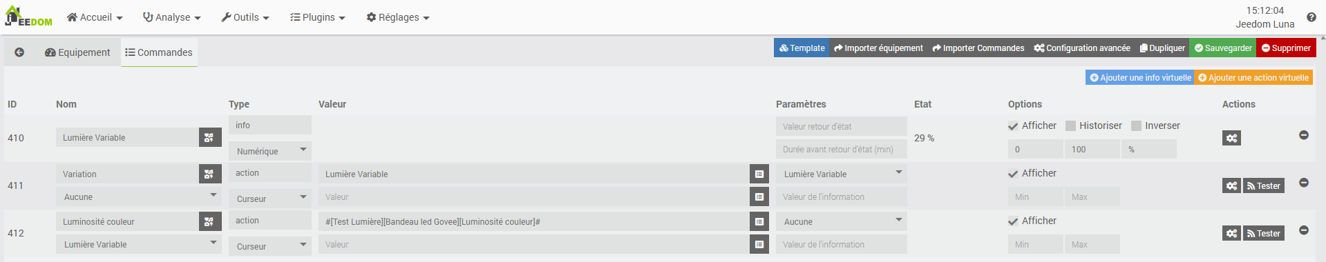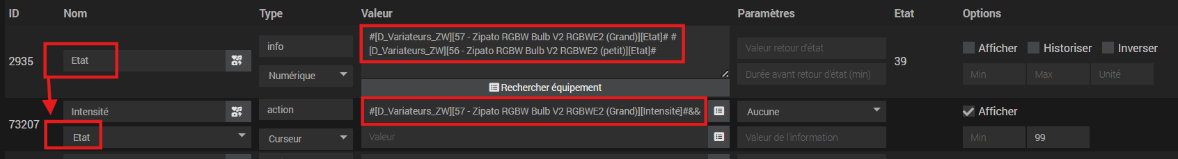 J’ai créé un virtuel pour simuler mes spots et j’ai en réel mon bandeau led Govee dont je voudrait qu’il suive l’état.