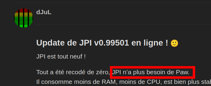 Au début j’ai utilisé le couple PAW-JPI pour gérer les envois de SMS , via JPI, mais au bout d’un certain temps impossible de communiquer entre JPI et Jeedom.