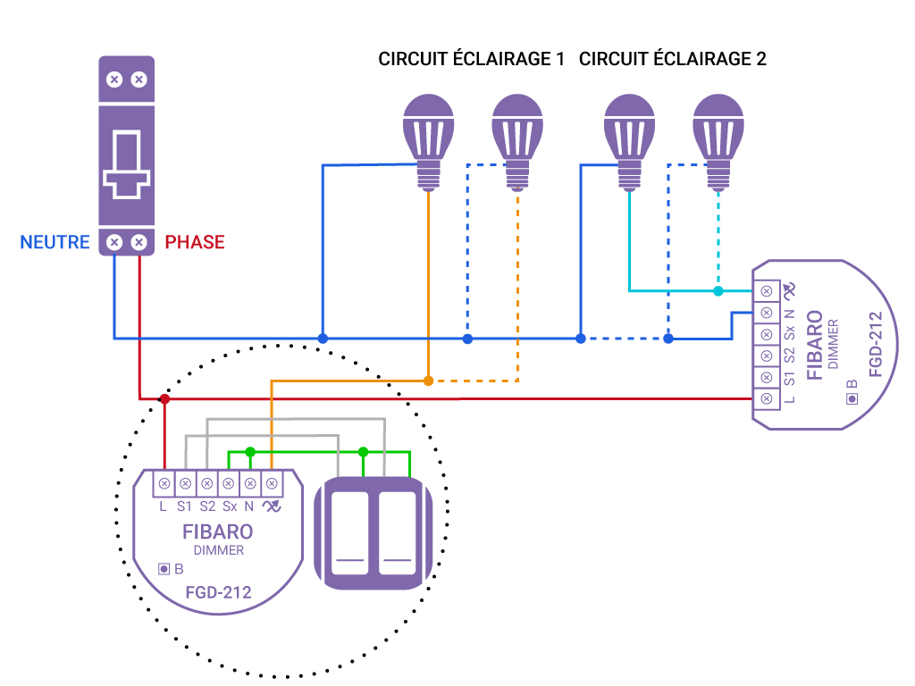 Problème il faut que je rajoute un troisième point d’allumage à l’autre bout de la pièce, je ne peux malheureusement pas retirer de fil entre ce troisième point d’allumage et mon FGD212 ( l’électricien à tous fait en câble et je ne voudrais pas à avoir à refaire le plafond de mon salon).