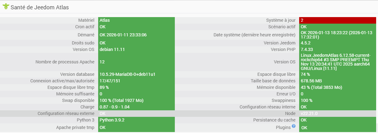 Je reprend le fil après réinstallation de mes 2 Atlas « proprement » = Armbian aligné sur Debian 11.11