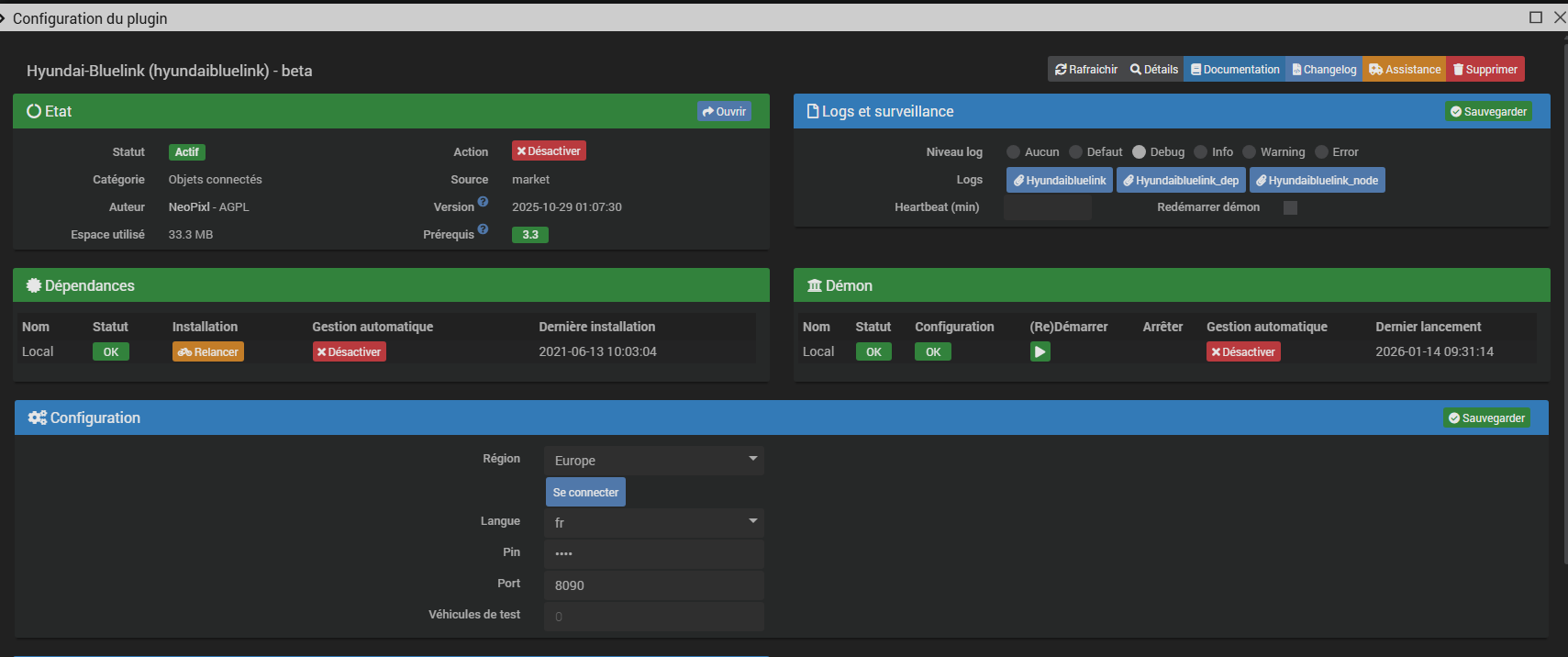 [2026-01-14 03:19:33][ERROR] Erreur sur la fonction cron du plugin : Le démon hyundaibluelink n'a pas réussi a traiter la demande. Details : http://127.0.0.1:8090/cars/TMAJE812XSJ378168/odometer?key=****** status : 500 , message : {"type":"error","message":"@EuropeVehicle.odometer: [400] Bad Request on [GET] https://prd.eu-ccapi.hyundai.com:8080/api/v2/spa/vehicles/5d5093a6-69c7-4b39-bde6-9156eb5e7b74/ccs2/carstatus/latest - {\"retCode\":\"F\",\"resCode\":\"4002\",\"resMsg\":\"Invalid request body - Invalid deviceId. \",\"msgId\":\"76d6e450-f0ef-11f0-9379-ab201cfbb031\"}"}