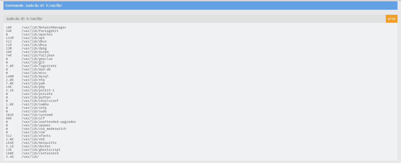 Pour voir ce qui prend de l’espace tu peux commencer par la commande suivante :