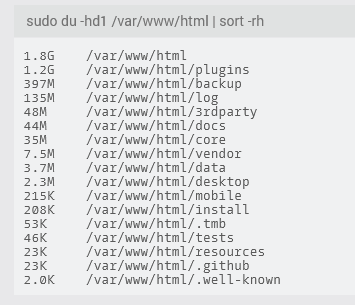 Tu peux remettre les résultats des commandes 1 à 3 de ceci : Identifier les répertoires et fichiers les plus volumineux