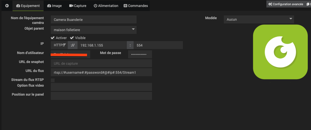 passe en http sur IP HTTP :// 192.168.1.155 :554