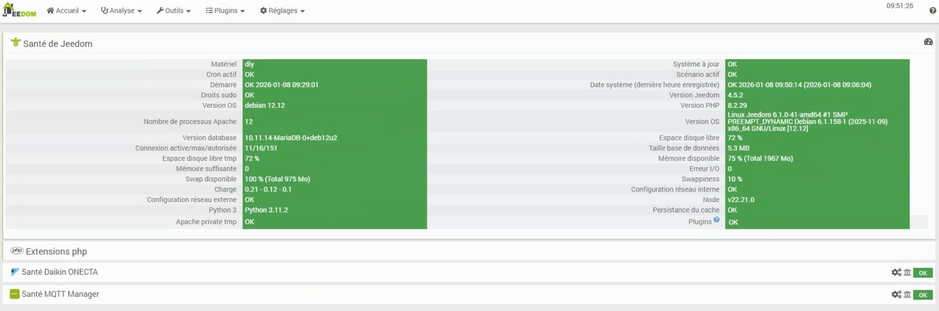 Je suis un petit nouveau sur Jeedom. je « test » aujourd’hui la solution sur une machine virtuelle qui est dans mon salon, un vieux w10 qui est muni d’un i5 avec 8G de ram.