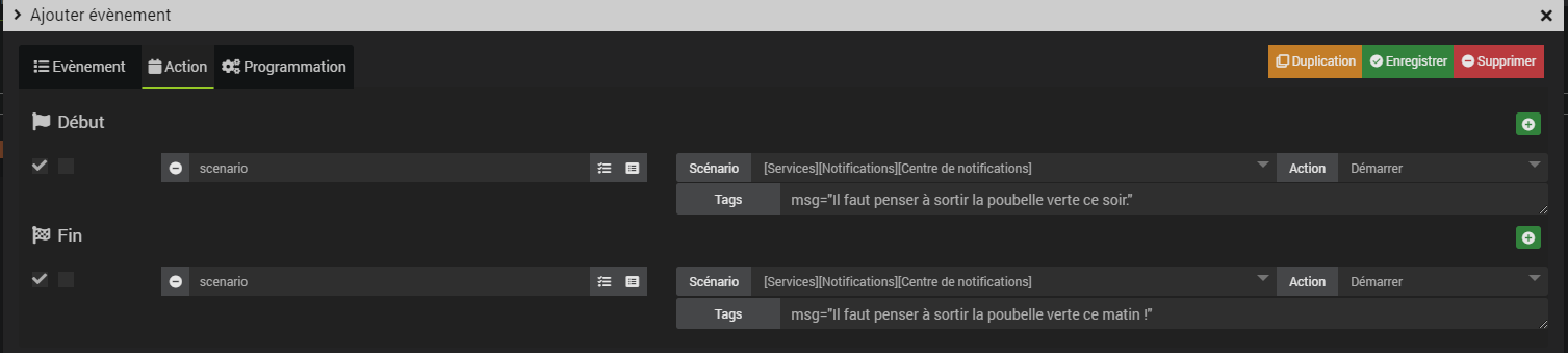Tu as la possibilité de déclencher directement une action au début et à la fin d’un évènement