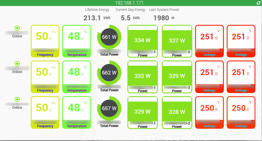 Voilà je pense que c’est pas mal comme ça. Il faudra par contre renseigner les valeurs max des panneaux car on ne peut pas les récupérer depuis l’ECU et éventuellement changer les valeurs pour les tensions et fréquences réseau suivant les pays et les normes.