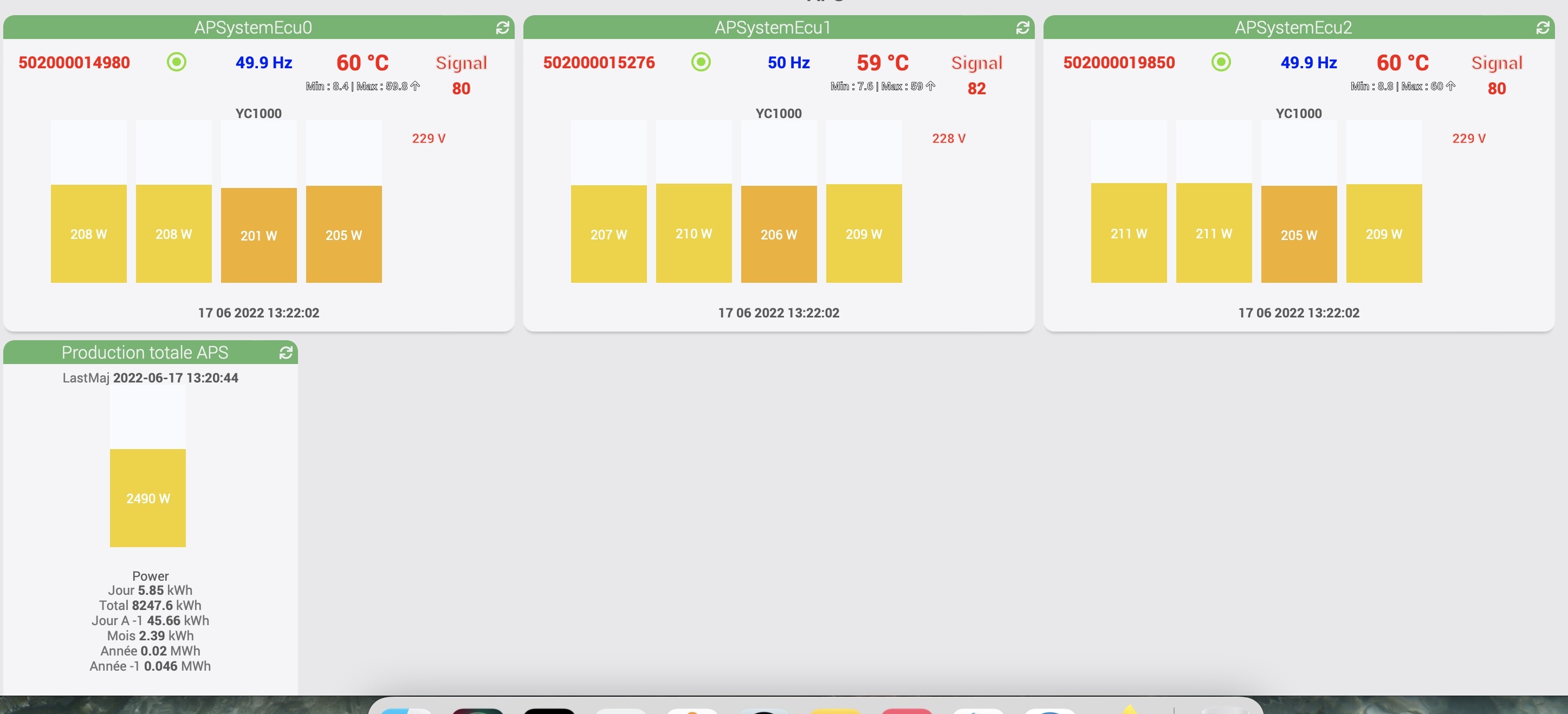 Même si ces données n’ont pas vraiment de sens dans la production photovoltaïque je dois avouer que je les trouve satisfaisante. Bien sûr je pourrais les obtenir avec un virtuel mais j’aime bien quand tout est rassemblé au même endroit.