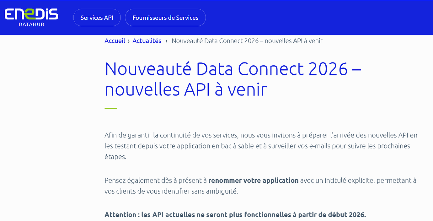 Le « souci » n’est donc pas lié à la limitation des appels à l’api Enedis à part si des appels à l’api sont effectués manuellement trop souvent. Si les données ne remontent plus du tout il faut plutôt revoir l’association Enedis > Jeedom (à refaire au moins tous les 3 ans vu que la liaison est valable 3 ans maximum).