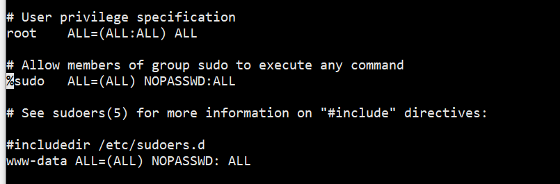 Le user avec nopasswd doit être défini après le %sudo