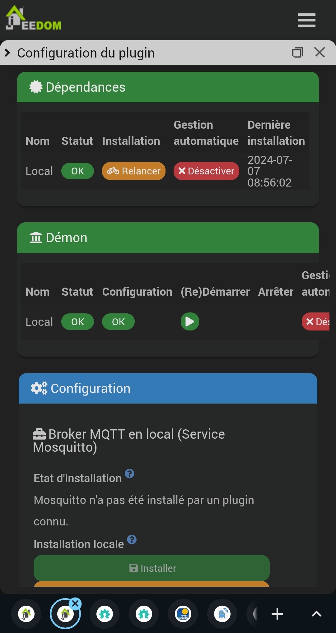 [2026-01-07 16:55:07] DEBUG Pas de message ou de Heartbeat reçu depuis >300s, le Démon est probablement mort.