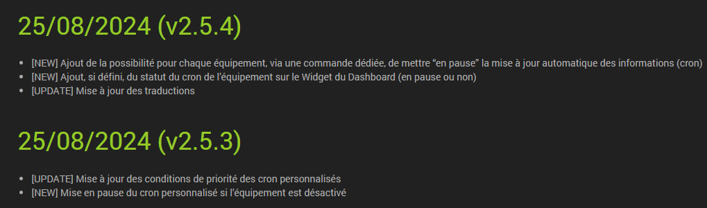 Au programme, l’ajout de commandes dédiées pour pouvoir « mettre en pause » la récupération des données d’un équipement (s’il est éteint par exemple pendant un temps), et l’affichage du statut sur le dashboard :