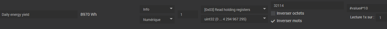 Production panneaux solaires : je pense que la bonne valeur est retournée par le registre 32064