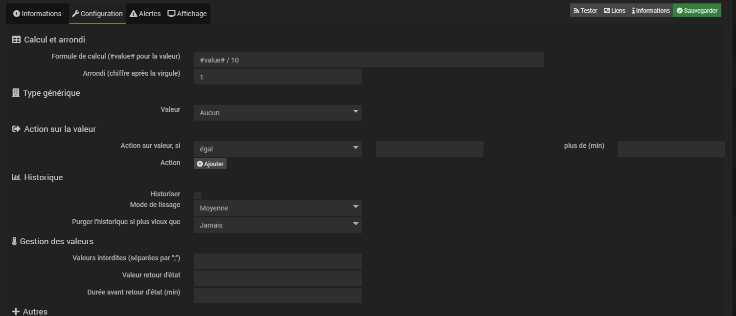 Je tente de faire ce calcul dans les configurations de la commande mais je ne sais pas si la condition #value# doit faire référence à celle calculée dans « calcul et arrondi » qui est celle divisée par 100 ou à la valeur relevée. Comme je n’ai pas de valeur négative en ce moment je verrai bien ![]()