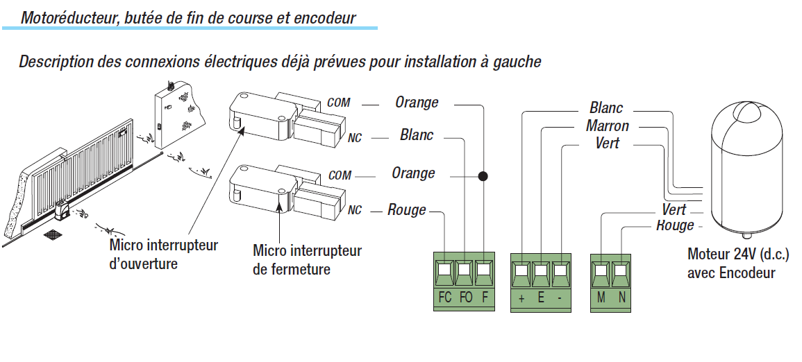 Les 2 entrées IN sur les bornes des capteurs de butée et les sortie OUT sur Ouverture partielle et Ouverture piéton