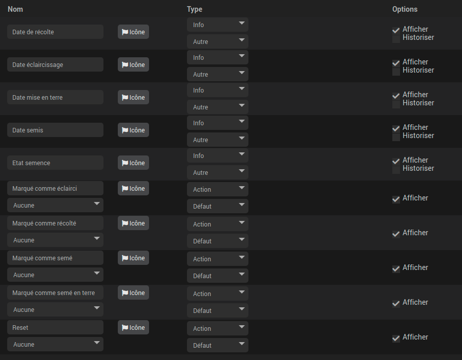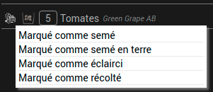 Ctrl+clic droit sur une semence déjà semé, j’obtiens le menu :