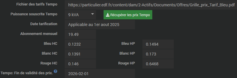 Ajout en beta d’un bouton pour récupérer les tarifs Tempo en utilisant le PDF disponible sur le site EDF. Merci @Noyax37