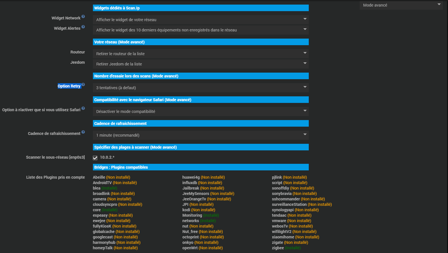 -Le widget Network contient bien mes équipements, mais avec le nom du constructeur plus celui de l’equipent associé …