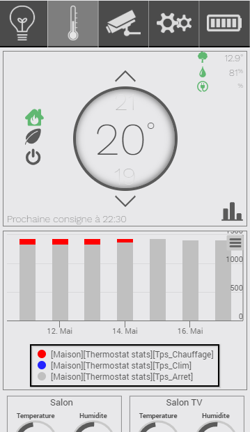 Disons que c’est une histoire de logique personnelle… Quand je passe devant mon design, j’aime bien savoir la température actuelle mesurée, la consigne étant plutôt la face cachée du système… Je ne souhaite avoir accès a la consigne que quand je veux la modifier… Pas de soucis si tu ne veux pas faire la modif, c’était juste un commentaire en passant…