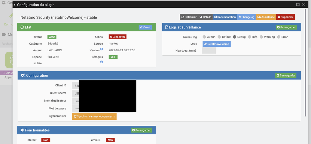 Je n’arrive plus via le plugin activé ou désactivé la surveillance de ma caméra netatmo welcome.