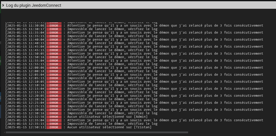 Je (re)précise que ce n’est pas moi qui ai installé jeedom sur mon PC, ni jeedom connect sur mon tel. Je ne sais pas faire grand-chose et ne comprends même pas certains termes ou phrases que vous employez ! Si je précise cela, c’est pour éviter que certains perdent leur temps, certainement précieux, à me dire " as-tu bien lu … " ou « il y a au moins 10 posts là-dessus… » comme j’ai pu lire à droite à gauche. Car oui, contrairement à ce que peuvent penser certains, avant de faire appel à la communauté, on lit les sujets, mais ce n’est pas pour autant que l’on y arrive. Croyez-moi, si je savais et pouvais faire tout seul ….
