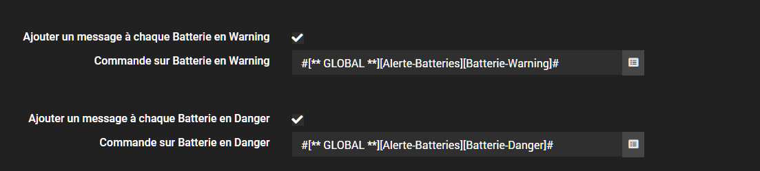 Pour tester , j’ai modifié les niveaux warning et alerte dans Réglages/Systeme/configuration/Equipements et ce pour avoir d’autres équipements en alerte et en warning.