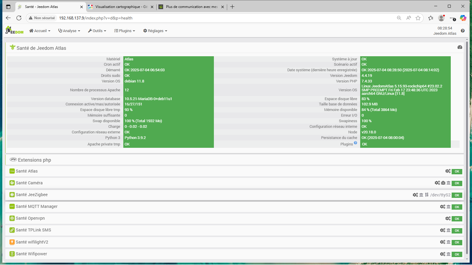Depuis ce matin, je n’ai plus aucune communication avec mes équipements. L’état de santé est bon, j’ai relancé les dépendances et le démon de jeezigbee. Comme ça n’a eu aucun effet, j’ai relancé mon Atlas.
