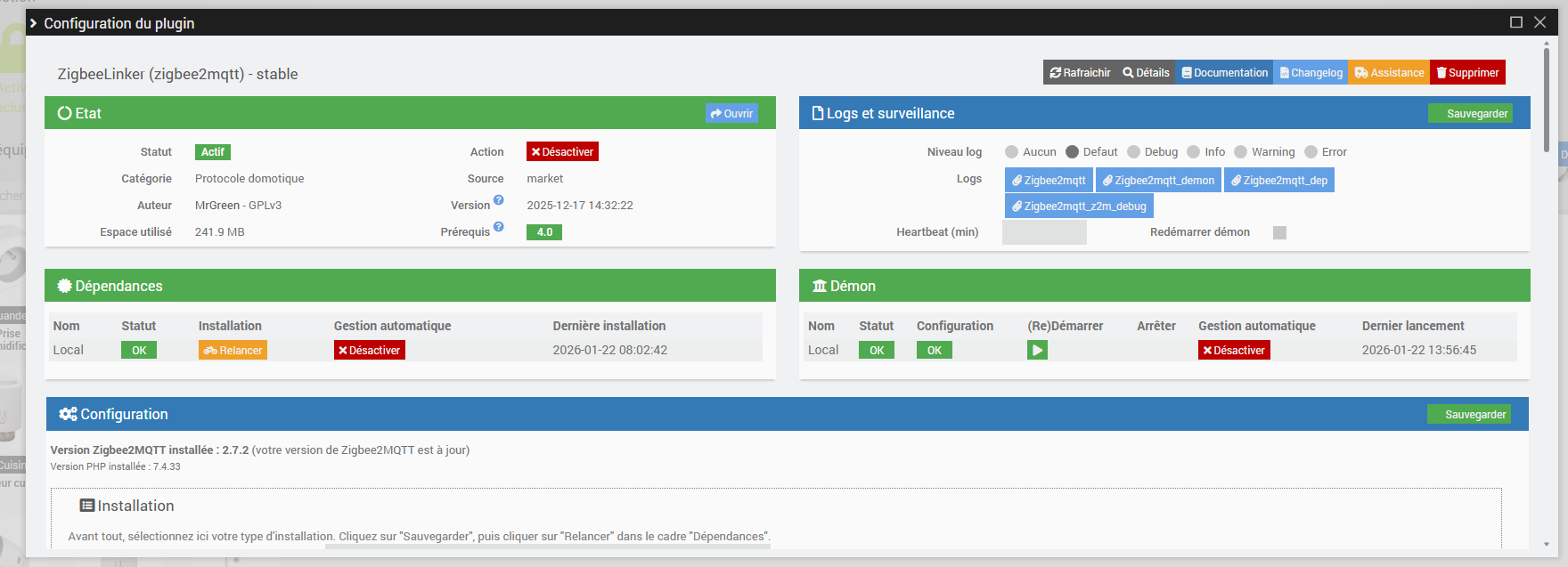 [2026-01-22 14:39:11] INFO ##### Le service Client MQTT ([Aucun][Zigbee2MQTT]) s'est connecté. #####