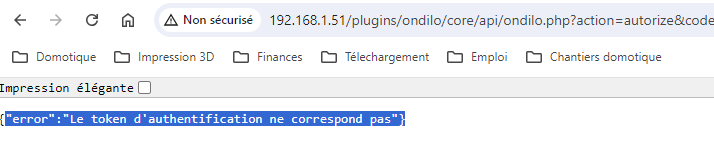 Lorsque que je me reconnecte via la page configuration du plugin, j’ai ce message pourtant c’est bien le bon mot de passe, il fonctionne via l’application :