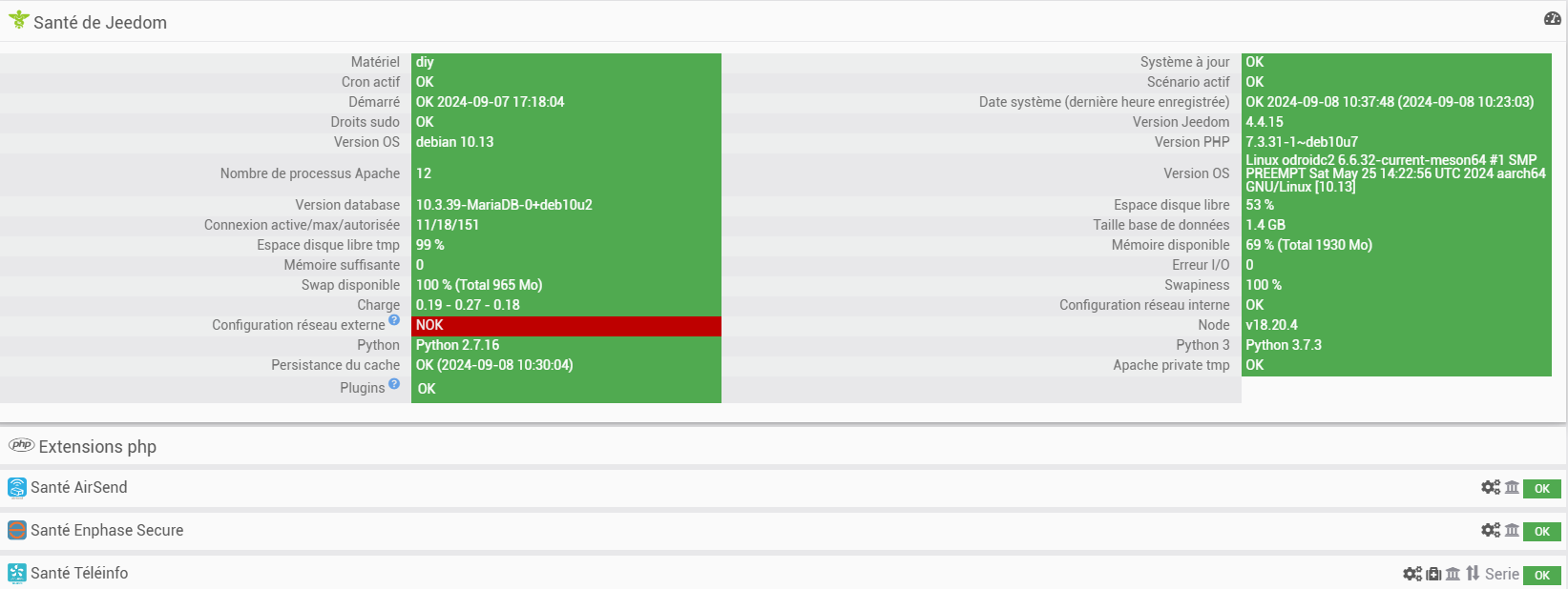 Côté Jeedom, je n’ai toujours pas de remontée de données. J’ai relancé l’installation des dépendances, sans changement.