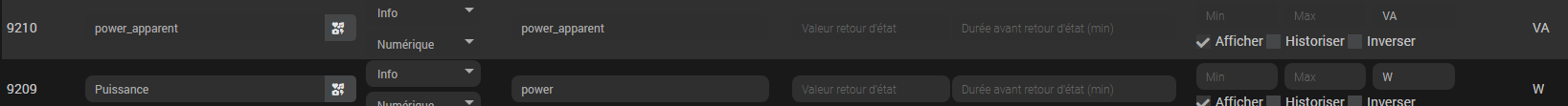Puissance apparente instantanée mesurée