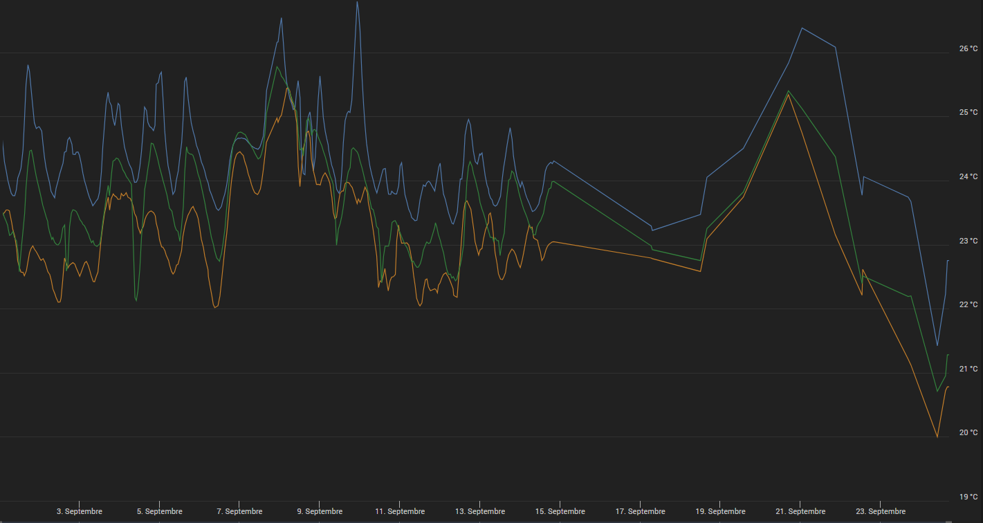 Depuis le 14 septembre à ~20h00, les historiques associés aux commandes de mes devices du plugin MyTado ne remonte qu’en moyenne trois valeurs par jours, alors que c’était largement plus fréquent avant, comme on peut le voir ici :