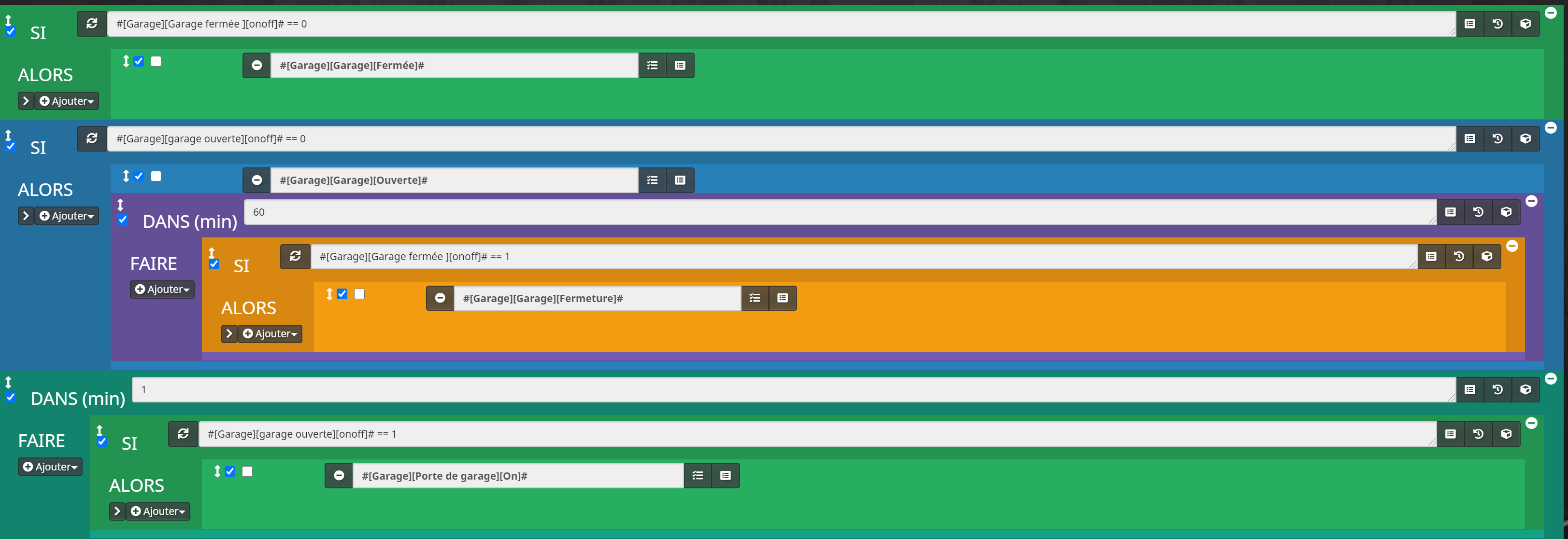 dans 1 minute si garageouverte=1 (soit 1=pas ouverte et 0=ouverte)