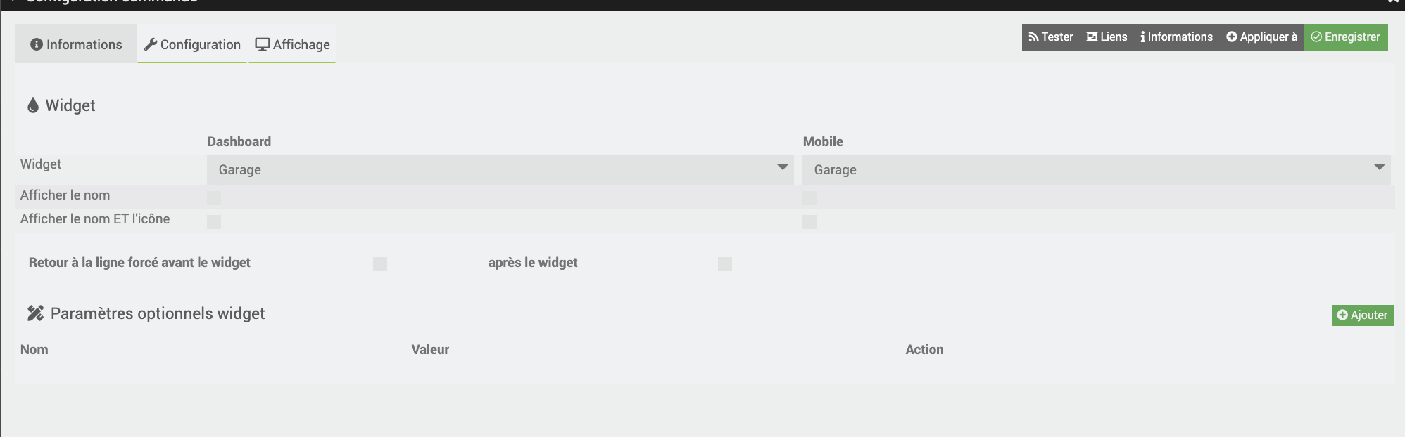 Je n’ai que le virtuel qui est affiché sur le dasboard, les actions Fermer et Ouvrir en choisissant le widget Garage