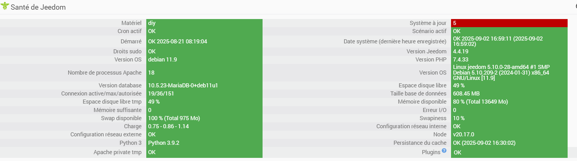 J’ai jeedom uptodate (qq plugins ne sont pas à jour car en beta)