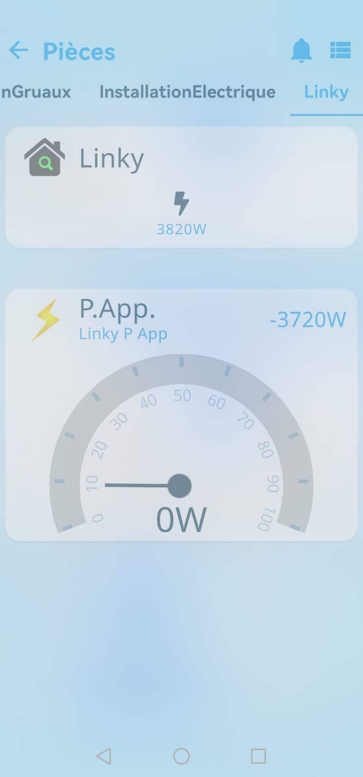 En-haut de l’écran sous le nom de la pièce (« Linky » ici): valeur positive