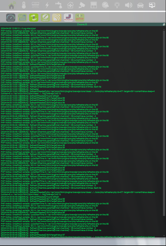 J’ai commencé à me familiariser avec Jeedom en Z-Wave avec le Z-Stick GEN5 - Aeon Labs, un plug pour prise électrique, puis les détecteurs de fumée, de mouvements, les températures, d’humidité et les scénarios (en mode code c’est plus facile), j’ai ensuite mis toutes mes caméras IP.