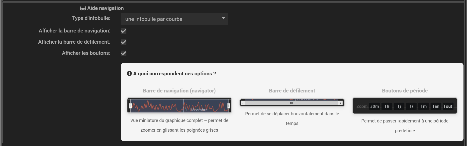- possibilité de choisir les infobulles soit regroupées dans une seule soit une infobulle par courbe