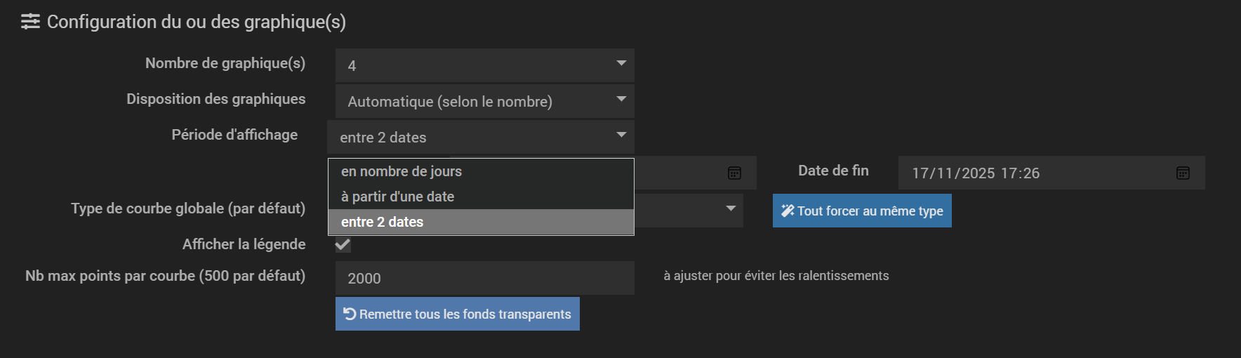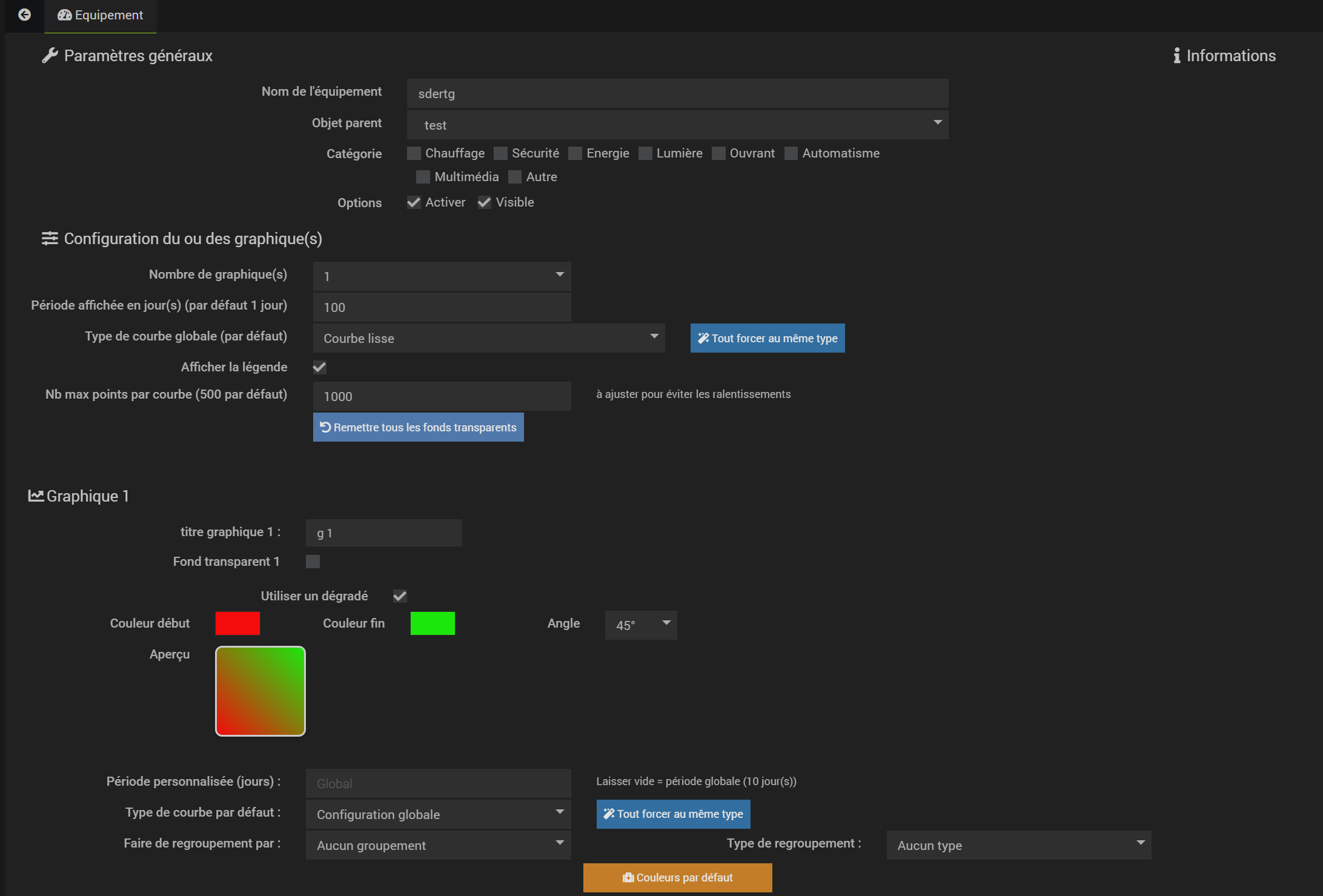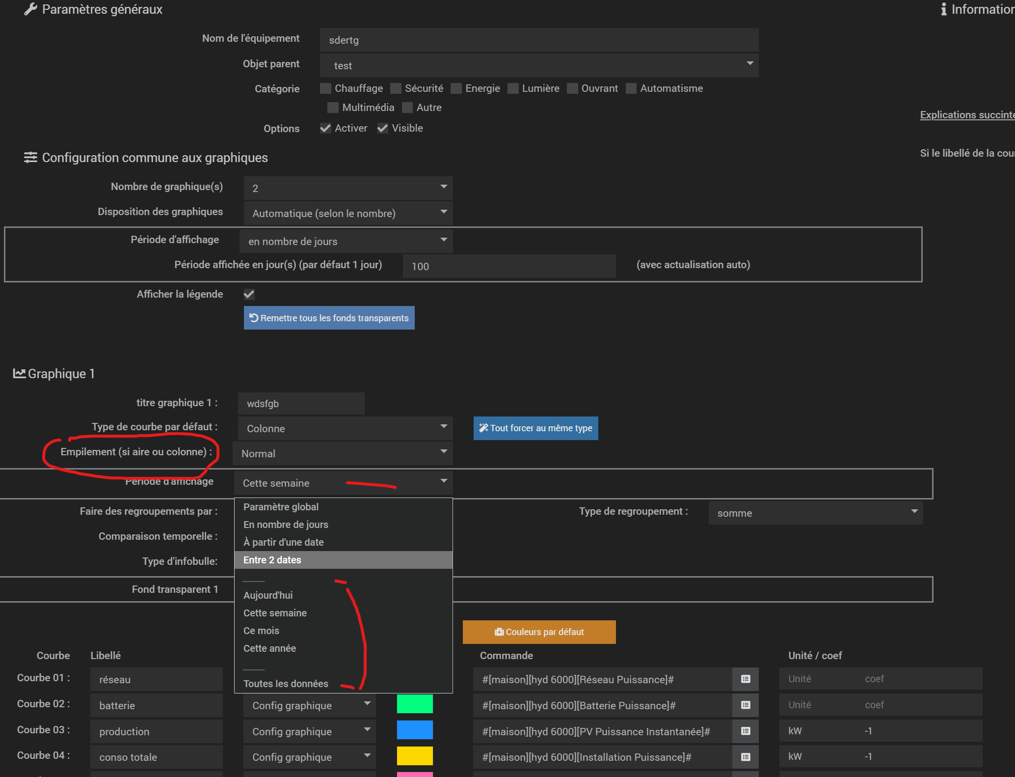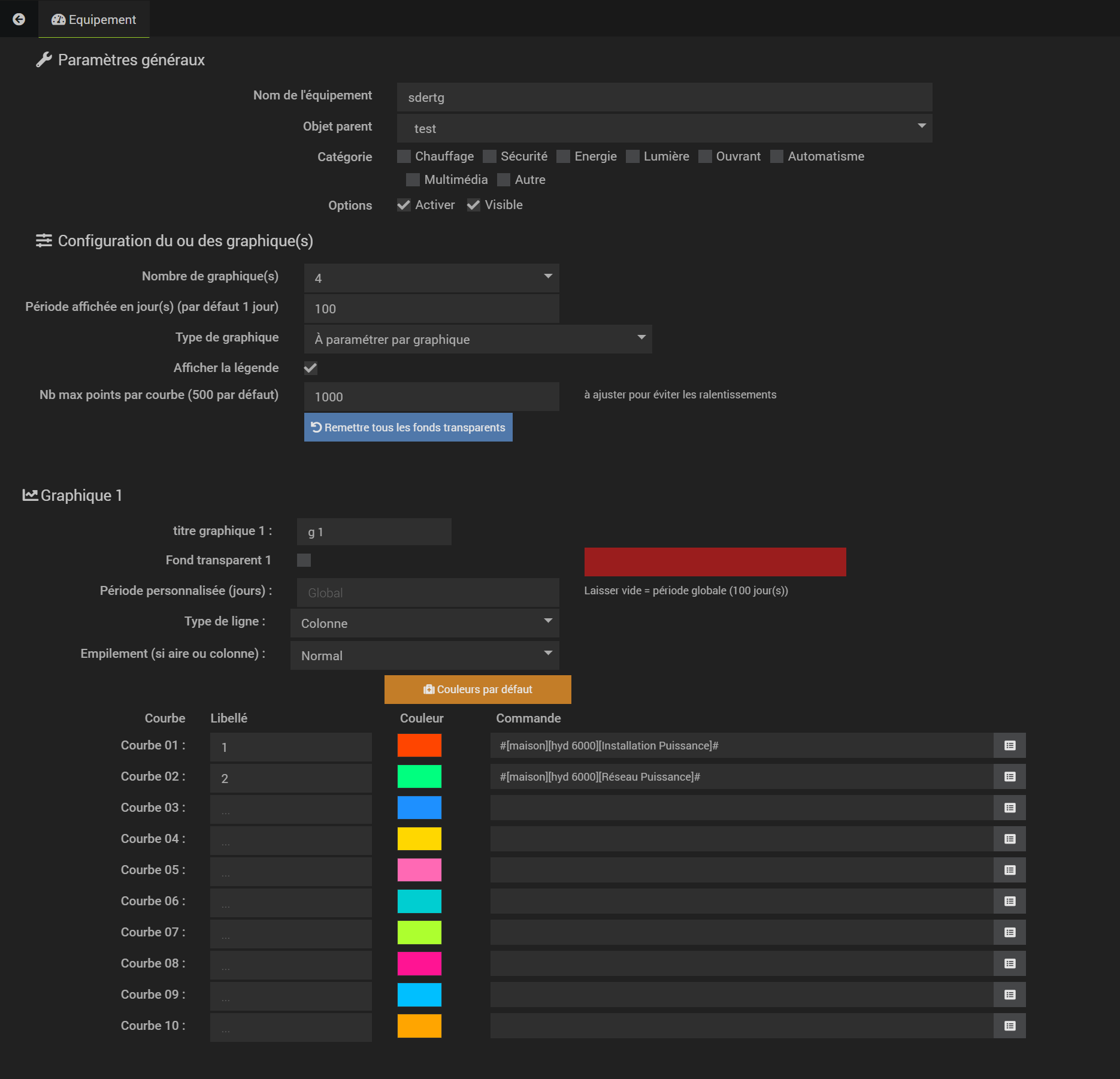 - configuration d’un équipement pour 2 graphiques affichés:
