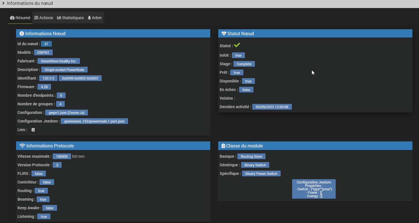 "confType" : "Configuration Jeedom <br> Properties : <br> - Switch : {"type":"prise"}<br> - Power : []<br> - Energy : []<br>",