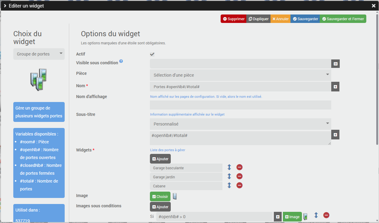 La définition du widget :