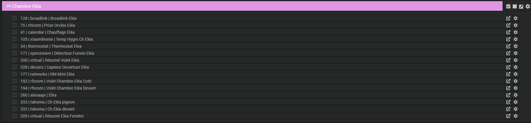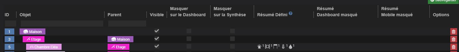 Dans l’objet Chambre Eléa, j’ai renseigné les diférents éléments que j’avais (Alerte,Volet, Fenêtre, Température, Humidité)