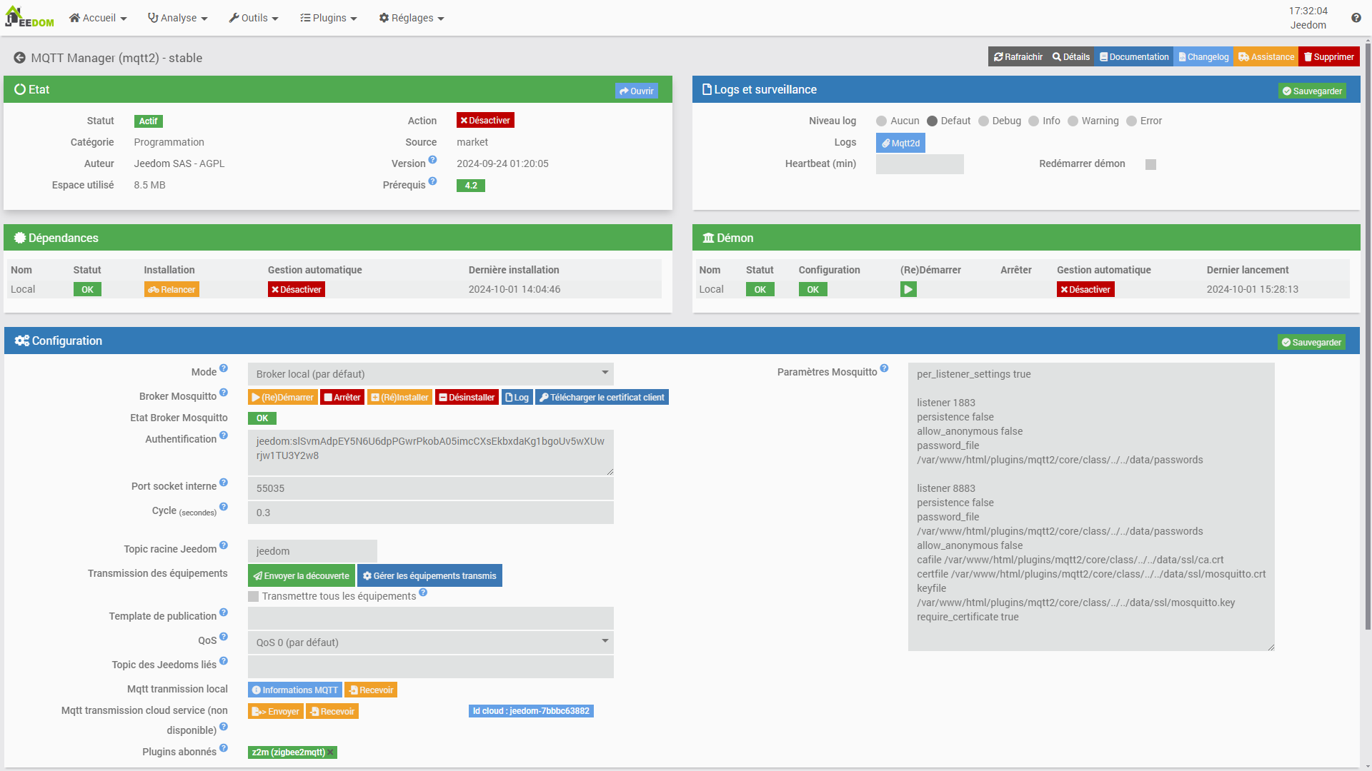 MQTT est installé et tourne, jeeZigbee aussi, j’accède à l’interface Zigbee2MQTT.