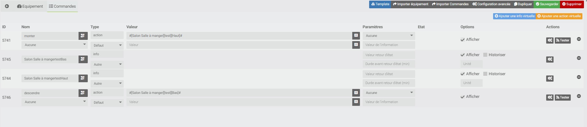 je viens de crée un nouveau virtuel avec comme nom test et j’ai mis un seul volet dedans mais ça ne fonctionne pas, il me crée encore les lignes info une fois que je sauvegarde le virtuel.